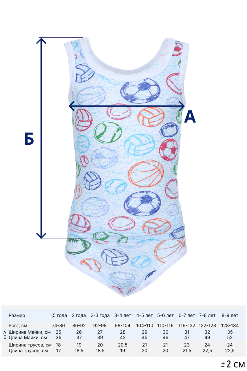 В комплект входит 2 майки и 2 трусов с мягкой, эластичной резинкой. Белье не раздражает детскую кожу, благодаря нежному материалу и мягким швам. Милый дизайн будет дарить хорошее настроение своему обладателю. В нашем ассортименте представлены разные рисунки, они могут отличаться от представленных на сайте.