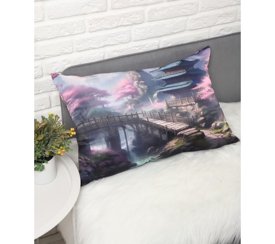 Декоративная интерьерная двусторонняя наволочка "Японский садик" на потайной молнии. Размер 50х70см. Подходит подушка размером 50х70 см, можно купить в комплекте.